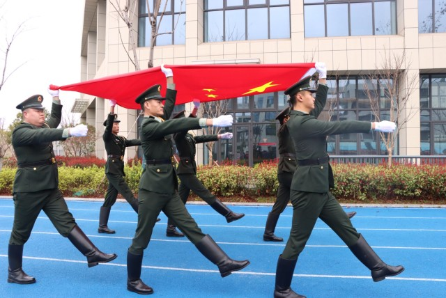近日,来自“北京——跟着礼兵去游学”团队的原中国人民解放军海陆空三军仪仗队、天安门国旗护卫队、中央警卫团中国礼兵及三军优秀教官团队走进杭州市笕桥中学,与全校师生共同完成了一场庄严的升旗仪式。